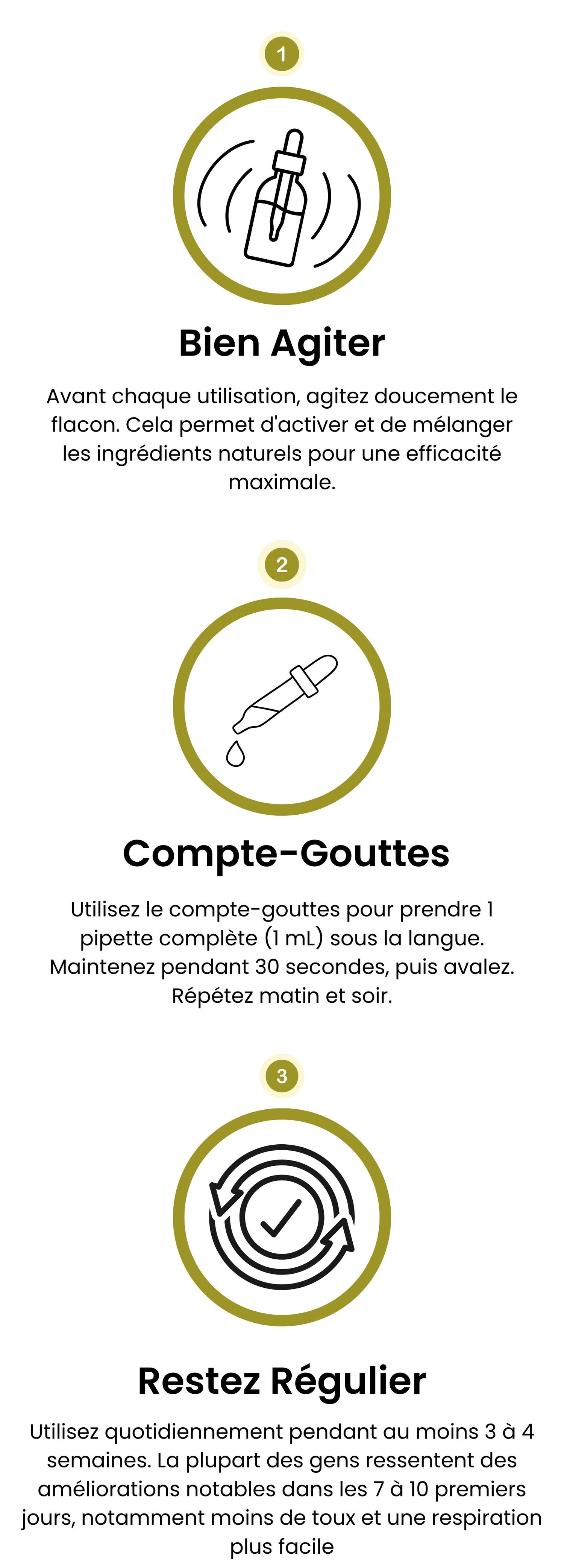La plupart des personnes commencent à ressentir une différence en 7 à 10 jours — une respiration plus légère, moins d'oppression thoracique ou moins de quintes de toux. Des résultats plus profonds (comme une meilleure endurance ou des poumons plus dégagés) apparaissent généralement après 3 à 4 semaines d'utilisation régulière. Beaucoup de nos clients disent qu'ils ont l'impression de « pouvoir enfin respirer à nouveau ».